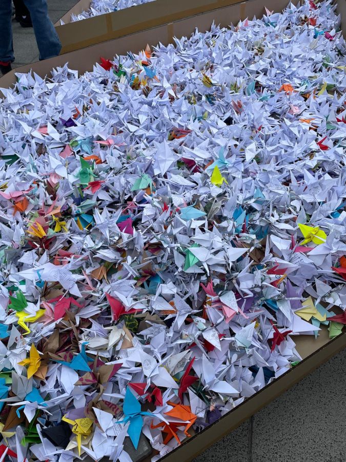Gajowickie Skrzaty wspólnie stworzyły część imponującej mozaiki, na którą złożyło się aż 80 000 papierowych żurawi origami.