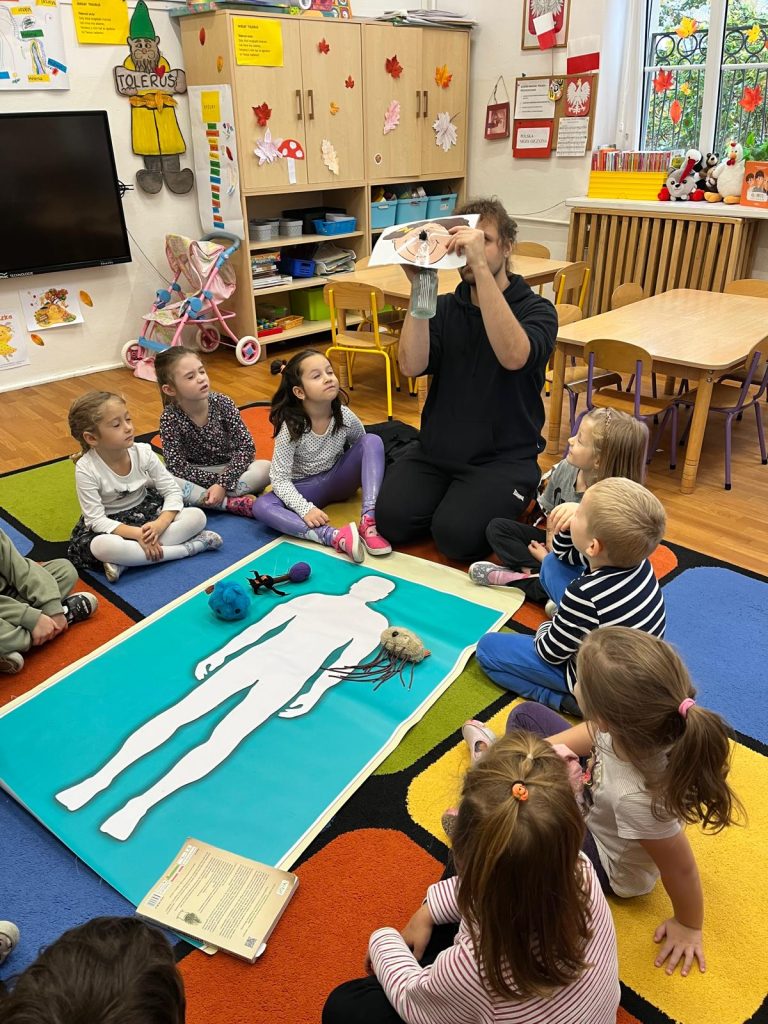 17 października Gajowickie Skrzaty poznały ciało od wewnątrz. Dzieci dowiedziały się, jak działa układ odpornościowy, w jaki sposób organizm broni się przed patogenami, czym są przeciwciała i jak działają szczepionki. Przypomniały sobie także, dlaczego tak ważna jest codzienna higiena – mycie rąk oraz zasłanianie ust podczas kichania i kaszlenia.
