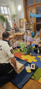 Serdecznie dziękujemy funkcjonariuszowi Straży Miejskiej za przeprowadzenie zajęć – była to dla dzieci bardzo cenna i pouczająca lekcja.