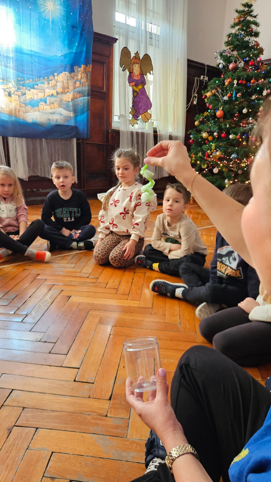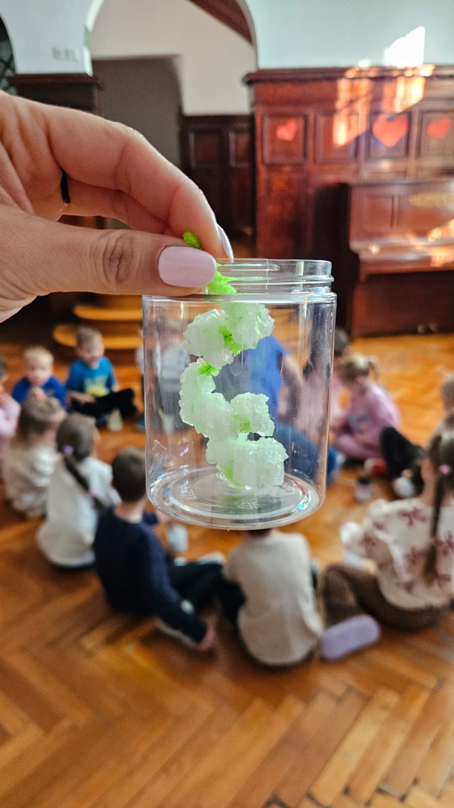 22 stycznia Gajowickie Skrzaty wzięły udział w pierwszych w tym roku warsztatach naukowych. Dzieci poznawały właściwości soli, sprawdzały działanie siły wyporu oraz tworzyły solne tęcze. Na zakończenie zabrały do domu eksperymentalne słoiczki, by obserwować proces krystalizacji soli. Było ciekawie i angażująco — teraz czekamy na spektakularne efekty w domu!