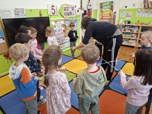 6 lutego podczas warsztatów przyrodniczych dzieci dowiedziały się, że elementy przyrody – woda, powietrze, gleba, rośliny i zwierzęta – są ze sobą wzajemnie powiązane. Zrozumiały, że zmiana jednego z nich wpływa na funkcjo nowanie całego systemu oraz jak ważna jest równowaga w przyrodzie.