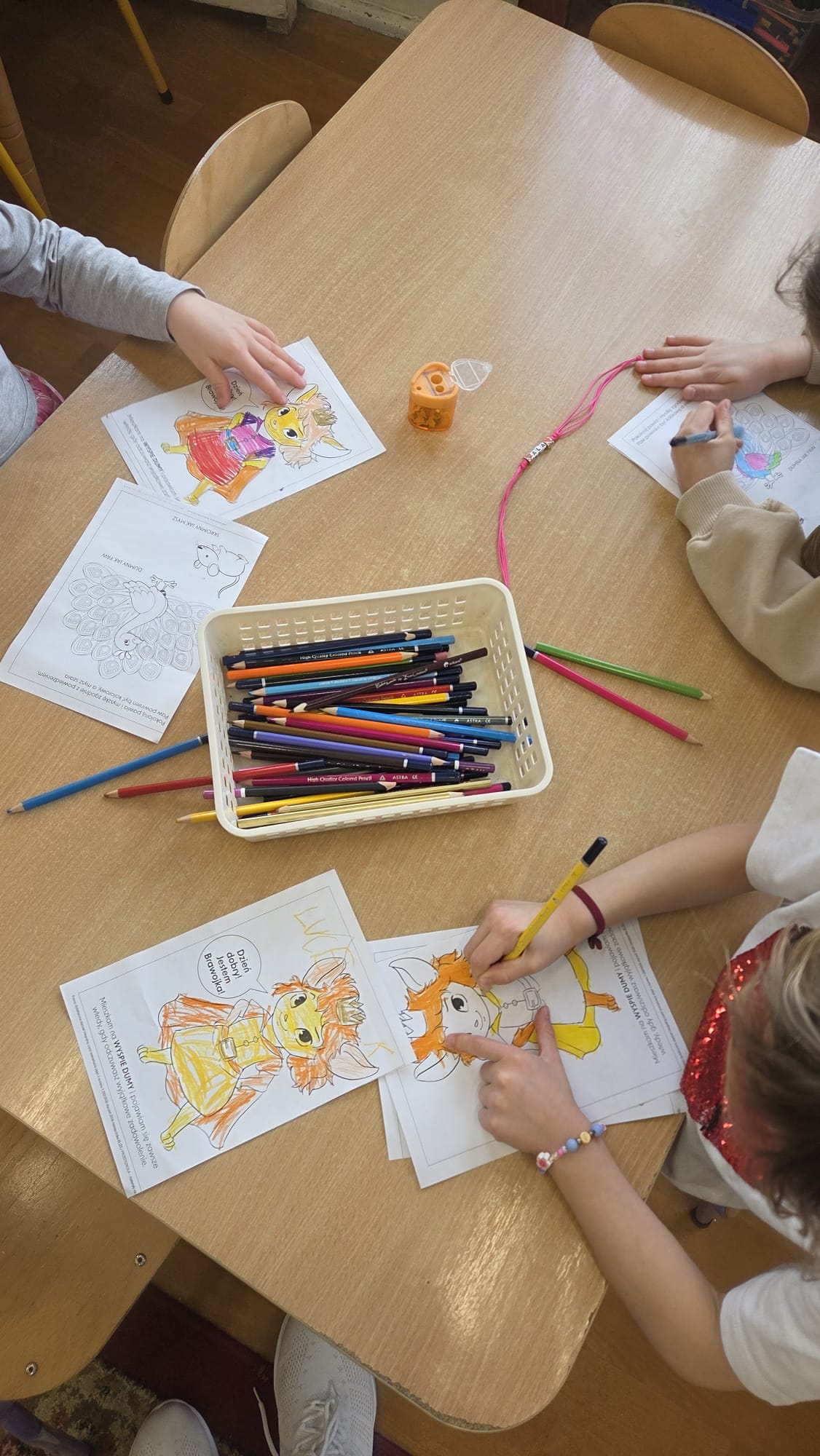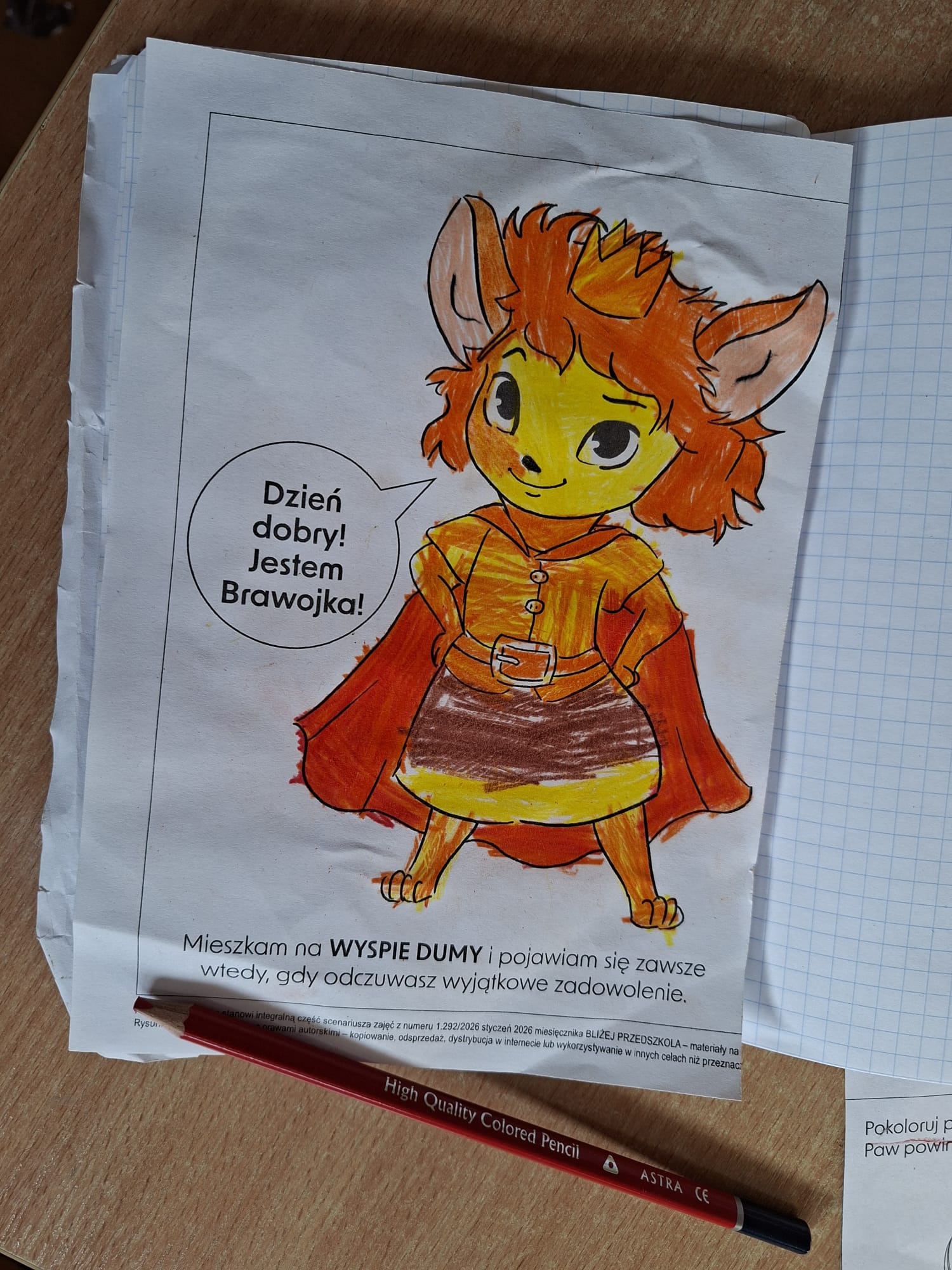Brawojka zaprosiła przedszkolaki do rozmów o dumie. Podczas wspólnej pracy plastycznej dzieci stworzyły piękne, kolorowe pióra dla pawia – efekt był zachwycający! Dowiedziały się, że bycie dumnym ze swoich osiągnięć nie oznacza bycia lepszym od innych, a także że możemy być dumni z kolegi, koleżanki czy całej grupy. Wspólne sukcesy cieszą podwójnie!