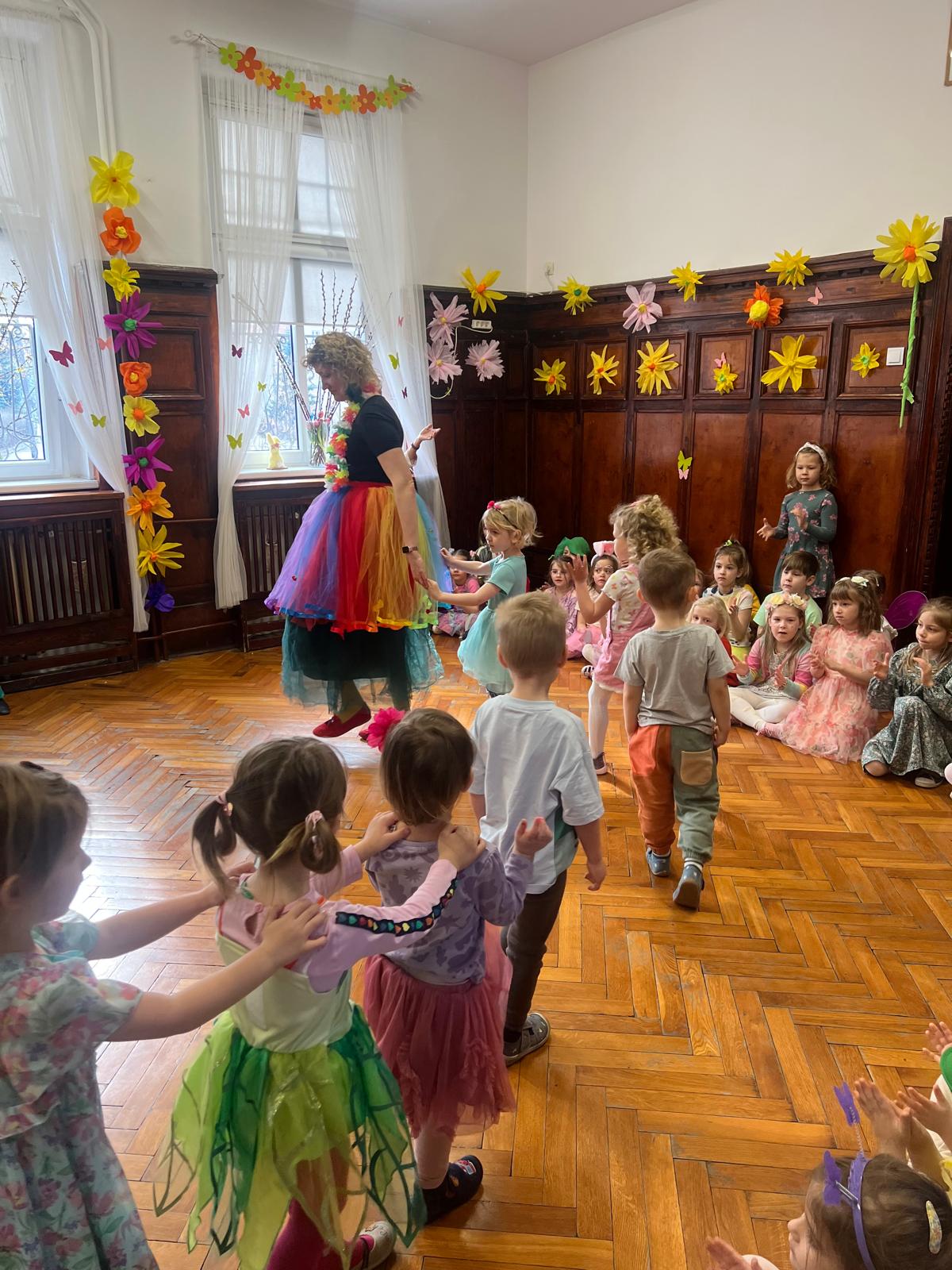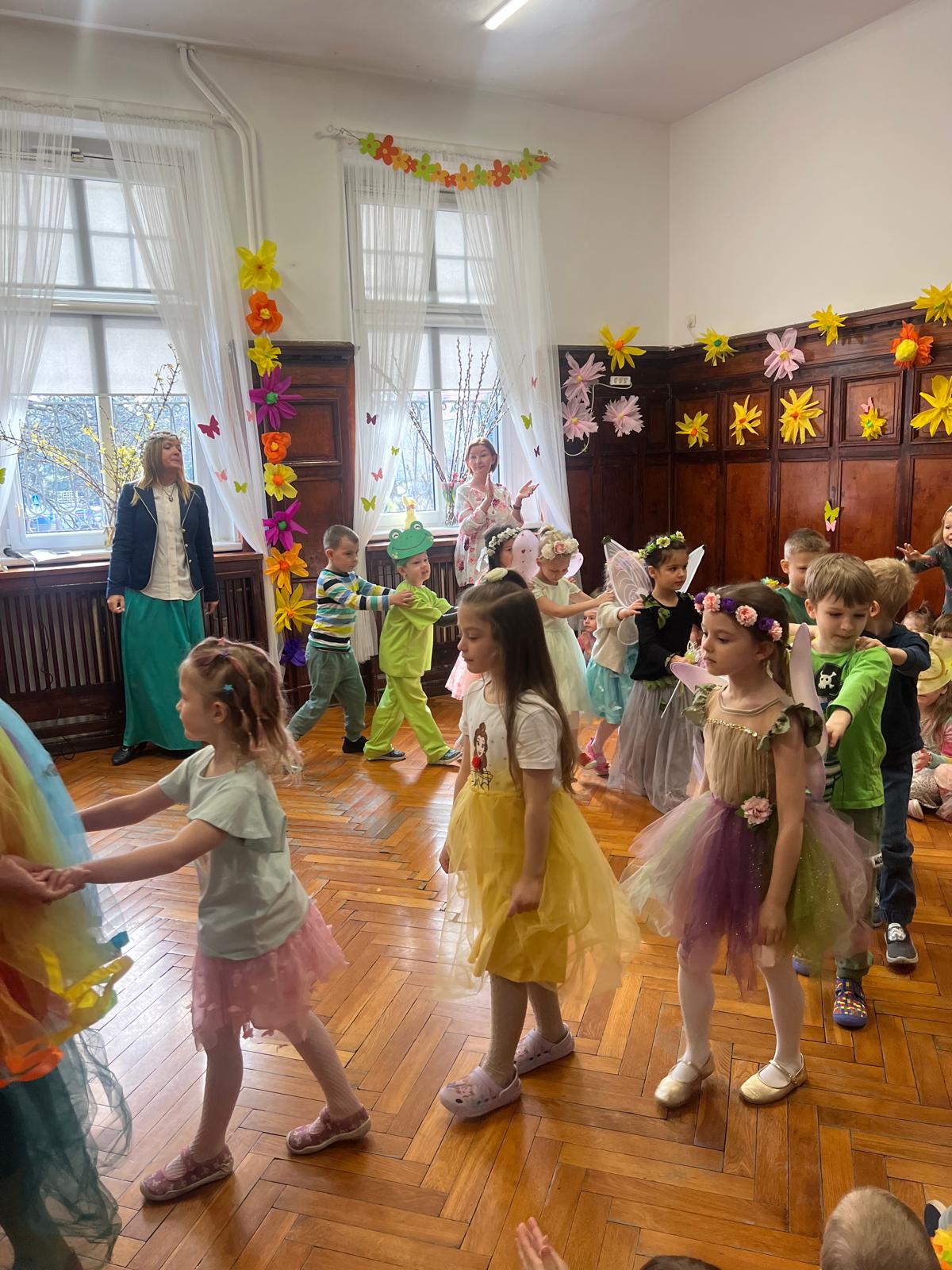 20 marca nasz hol zamienił się w wiosenną łąkę, a my z radością wyczekiwaliśmy Pani Wiosny. Bal wiosenny odbył się w kolorowej i magicznej atmosferze – nie zabrakło tańców oraz wspólnych zabaw.