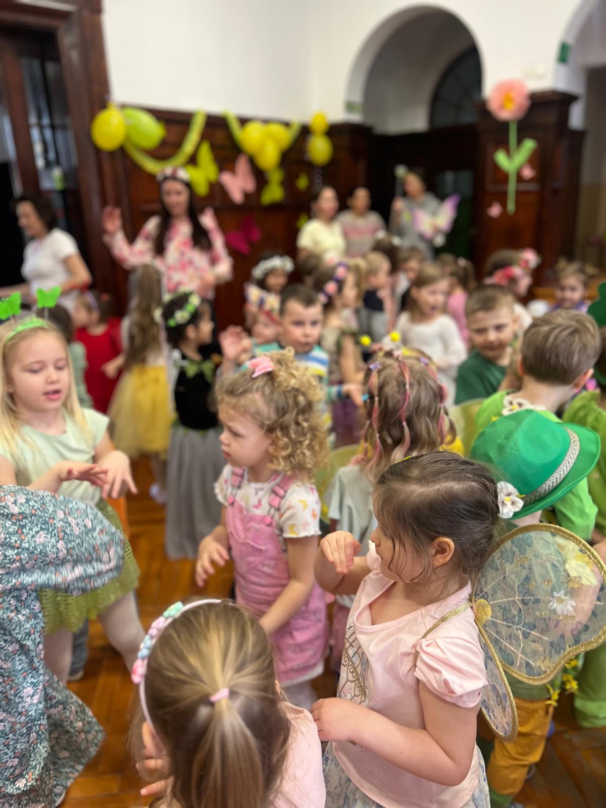 Podczas balu odwiedziły nas wróżki leśne, motylki, pszczółki, bociany, żabki, owieczki i króliczki oraz wiele innych, barwnych i kwiecistych postaci, dzięki którym ten czas był naprawdę wyjątkowy – był to dzień pełen radości, uśmiechu i prawdziwie wiosennej energii! Serdecznie dziękujemy rodzicom za zaangażowanie i przygotowanie pięknych strojów.