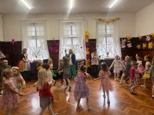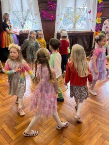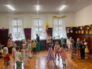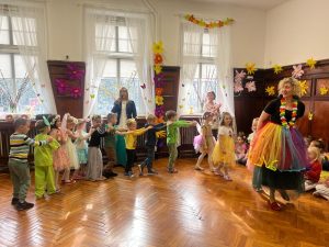 Podczas balu odwiedziły nas wróżki leśne, motylki, pszczółki, bociany, żabki, owieczki i króliczki oraz wiele innych, barwnych i kwiecistych postaci, dzięki którym ten czas był naprawdę wyjątkowy – był to dzień pełen radości, uśmiechu i prawdziwie wiosennej energii! Serdecznie dziękujemy rodzicom za zaangażowanie i przygotowanie pięknych strojów.