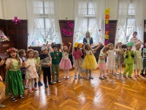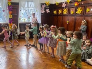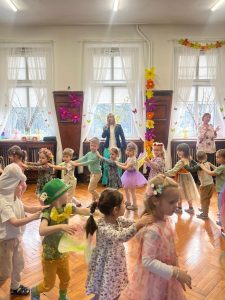 20 marca nasz hol zamienił się w wiosenną łąkę, a my z radością wyczekiwaliśmy Pani Wiosny. Bal wiosenny odbył się w kolorowej i magicznej atmosferze – nie zabrakło tańców oraz wspólnych zabaw.
