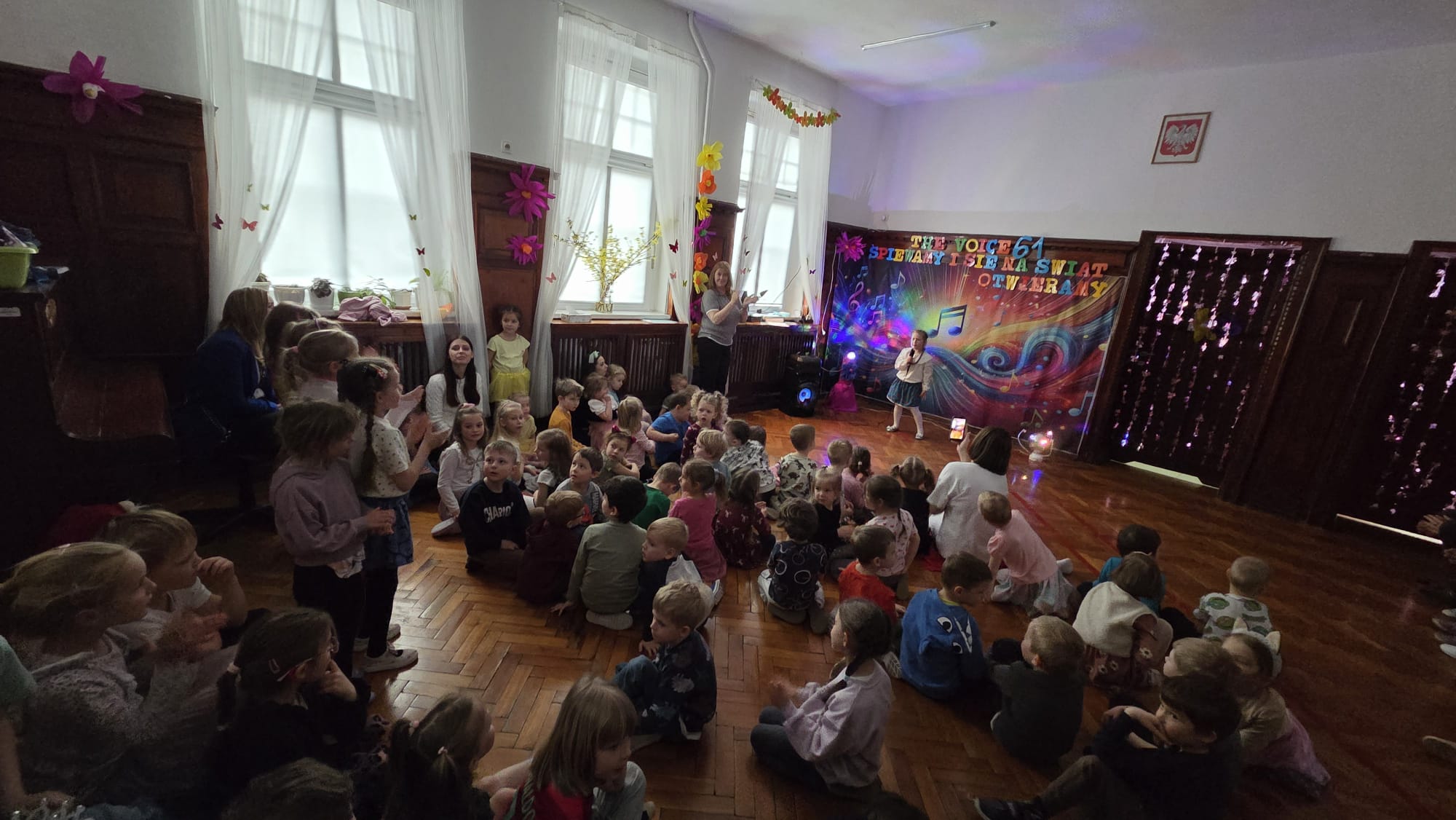 26 marca w naszym przedszkolu odbyła się kolejna edycja The Voice 61 – Śpiewamy i się na świat otwieramy. Przegląd był wyjątkowym czasem dla naszych młodych wokalistów, którzy mają zamiłowanie do śpiewania przed publicznością, a także okazją do integracji wszystkich grup.