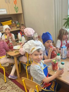 21 kwietnia, już bez blasku fleszy, dzieci z grupy V ponownie wcieliły się w małych odkrywców smaków i… zakisiły pomidory w maślance!