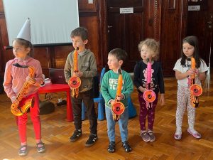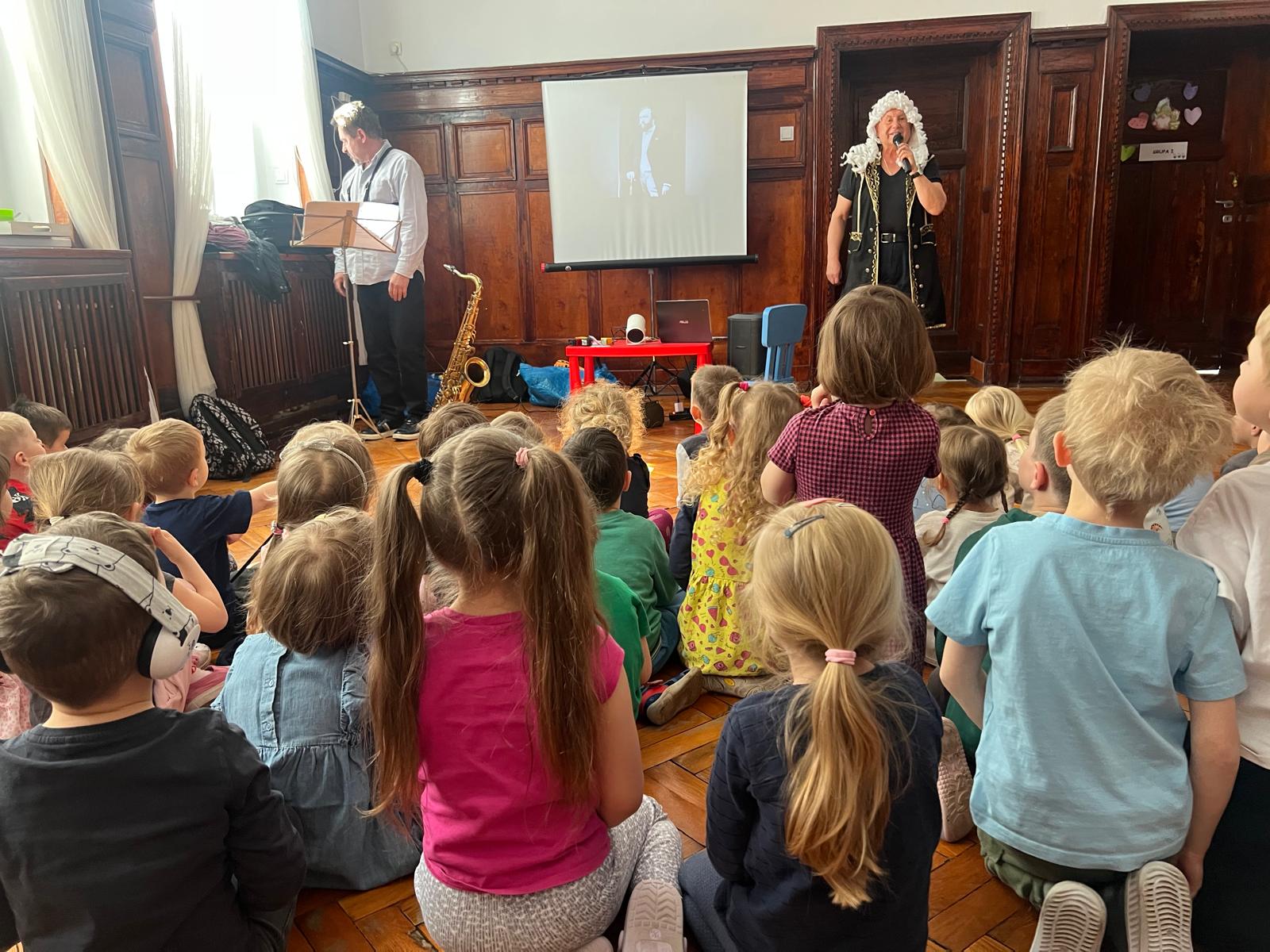 23 kwietnia w naszym przedszkolu, w ramach cyklu „Muzyczne Spotkania z Dziadkiem Bachem”, odbyły się kolejne zajęcia muzyczne. Tym razem Dziadek Bach odwiedził nas wraz ze swoim gościem, który zaprezentował saksofon. Spotkanie, jak zawsze, przebiegło w radosnej i pełnej pozytywnej energii atmosferze, a przedszkolaki dowiedziały się wielu interesujących informacji na temat tego niezwykłego instrumentu.